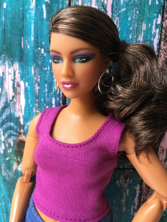 The bikini is exactly as the description says. Great stitchings, fits perfectly a regular doll body. Love the colours . Thank you for this creation !