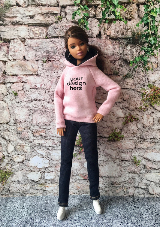 Solid Custom Print Hoodie for Curvy Dolls 1/6-scale