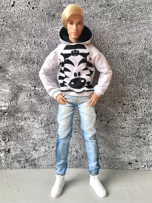 BQ-INFINITE – Sweat à capuche avec imprimé zèbre pour poupées Ken 30 cm